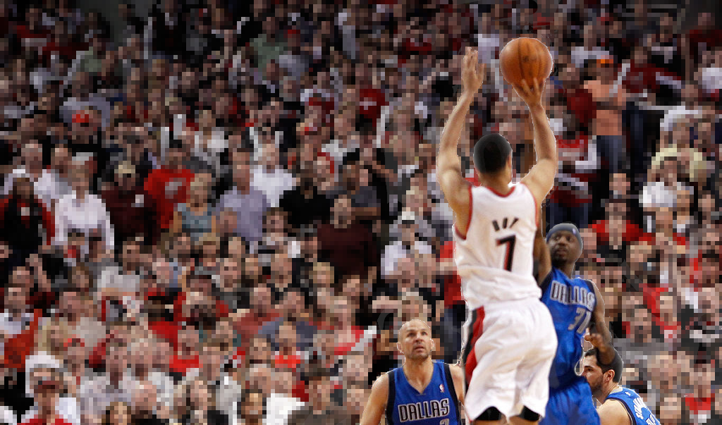 A still taken from archived NBA footage, with a low resolution audience in the background